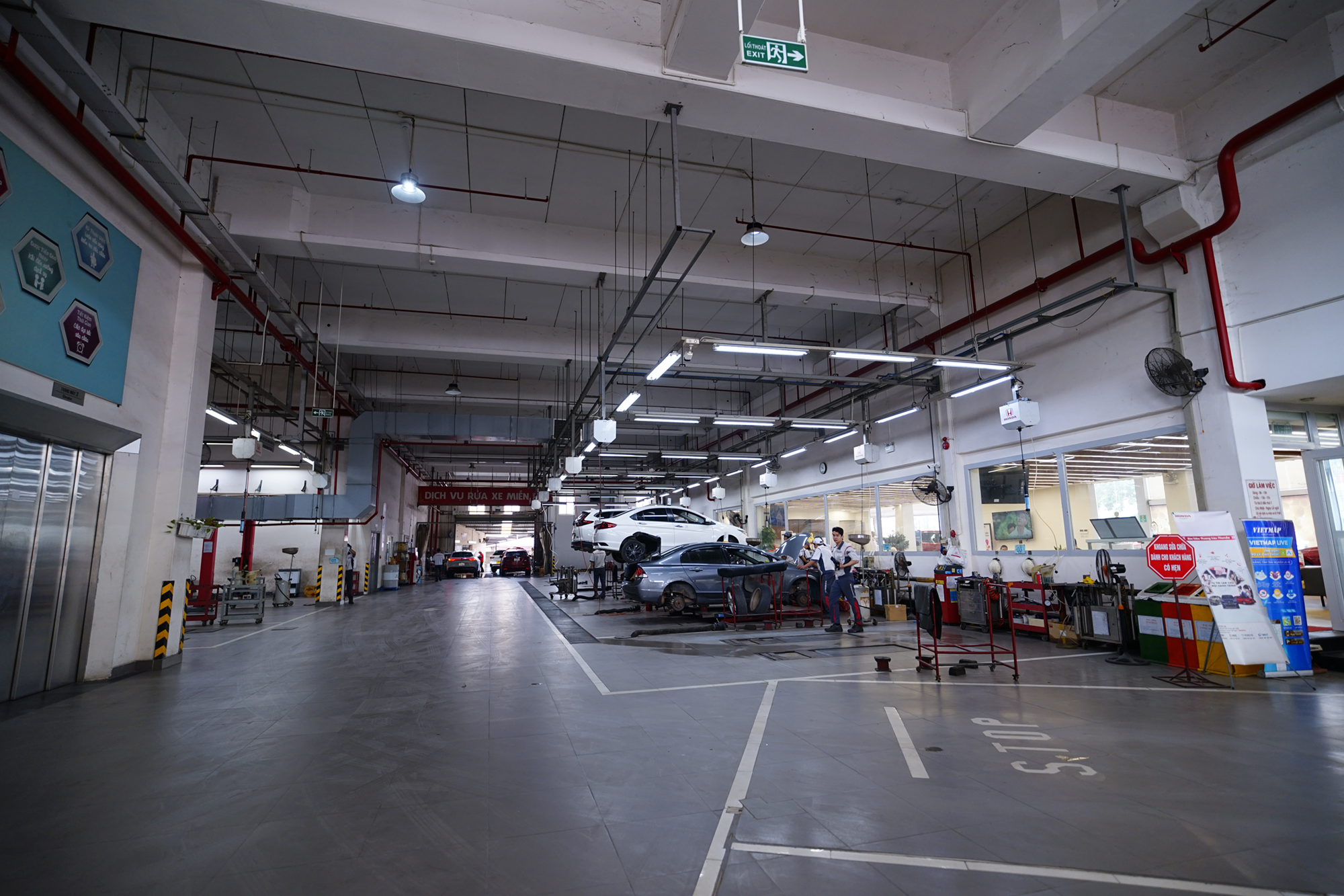 Xưởng dịch vụ quy mô lớn, trang bị cầu nâng, máy chẩn đoán HDS, khu sơn tiêu chuẩn